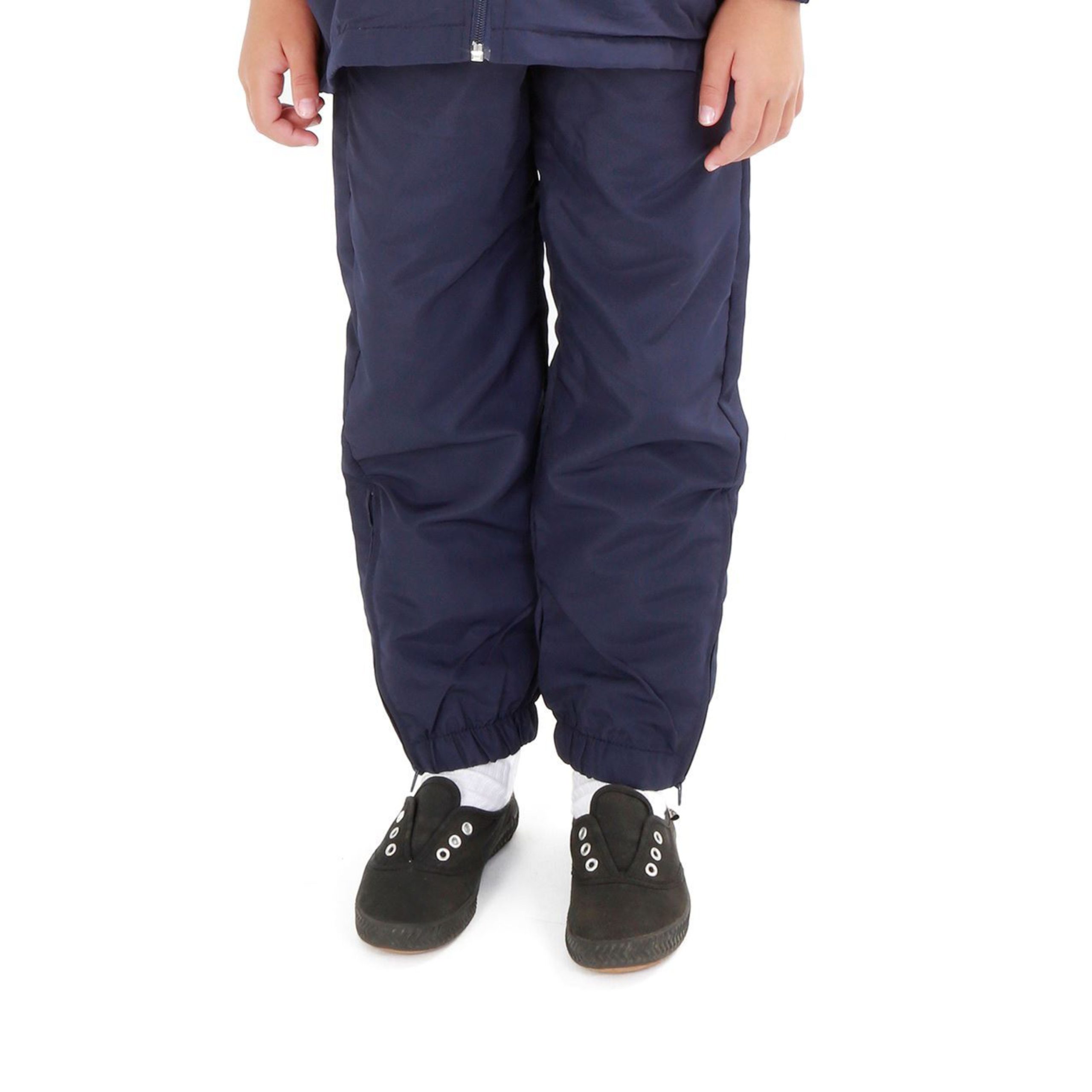 Navy tracksuit pants with maroon insert and zip on the the ankle. Compulsory uniform.